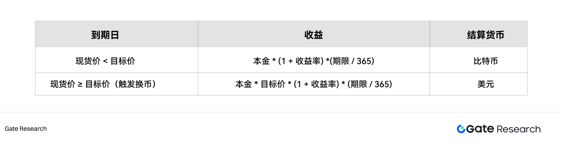 • 若 BTC ≥ K,则没有被行权,只赚利息,收益 = 固定收益