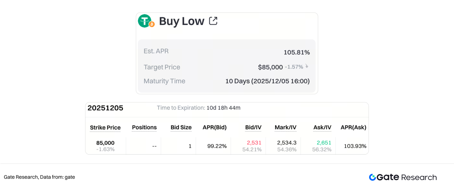 其中,“Sell Call”和“Sell Put”策略在双币投资投资中分别对应“高卖”和“低买”,因此从策略执行上可以采取适合的行情执行与之对应的策略。具体而言,在牛市末期或震荡市中,投资者可通过“高卖”结构押注波动上行受限,同时赚取较高隐含波动率带来的权利金;而在震荡期或熊市末期,“低买”策略更适用于捕捉波动收敛与价格企稳带来的时间价值收益。