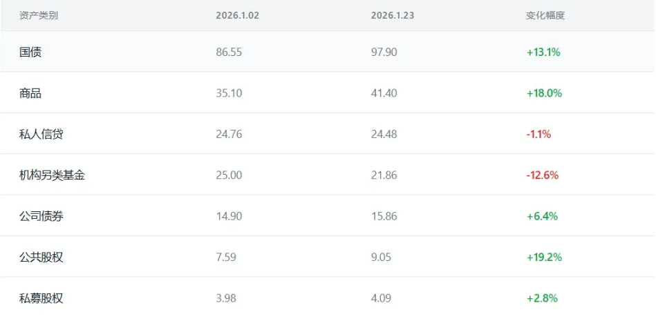 从结构变化看,本期 RWA 增量高度集中在国债与商品两类资产。
