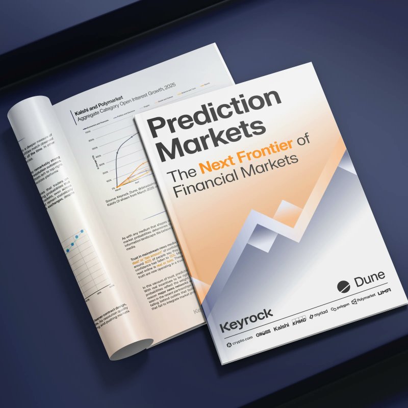 由全球头部做市商 Keyrock 与链上数据平台 Dune 联合发布的《Prediction Markets: The Next Frontier of Financial Markets》,系统性地将“预测市场”从加密圈小众实验提升至新一代金融基础设施的战略高度。