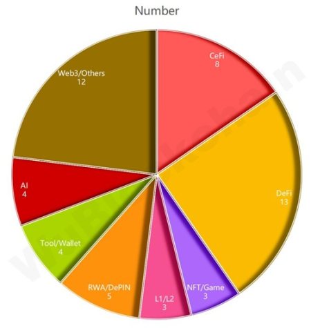 其中,CeFi 占比约 15%,DeFi 占比约 25%,NFT/GameFi 占比约 6%,L1/L2 占比约 6%,RWA/DePIN 占比约 10%,Tool/Wallet 占比约 8%,AI 占比约 8%。